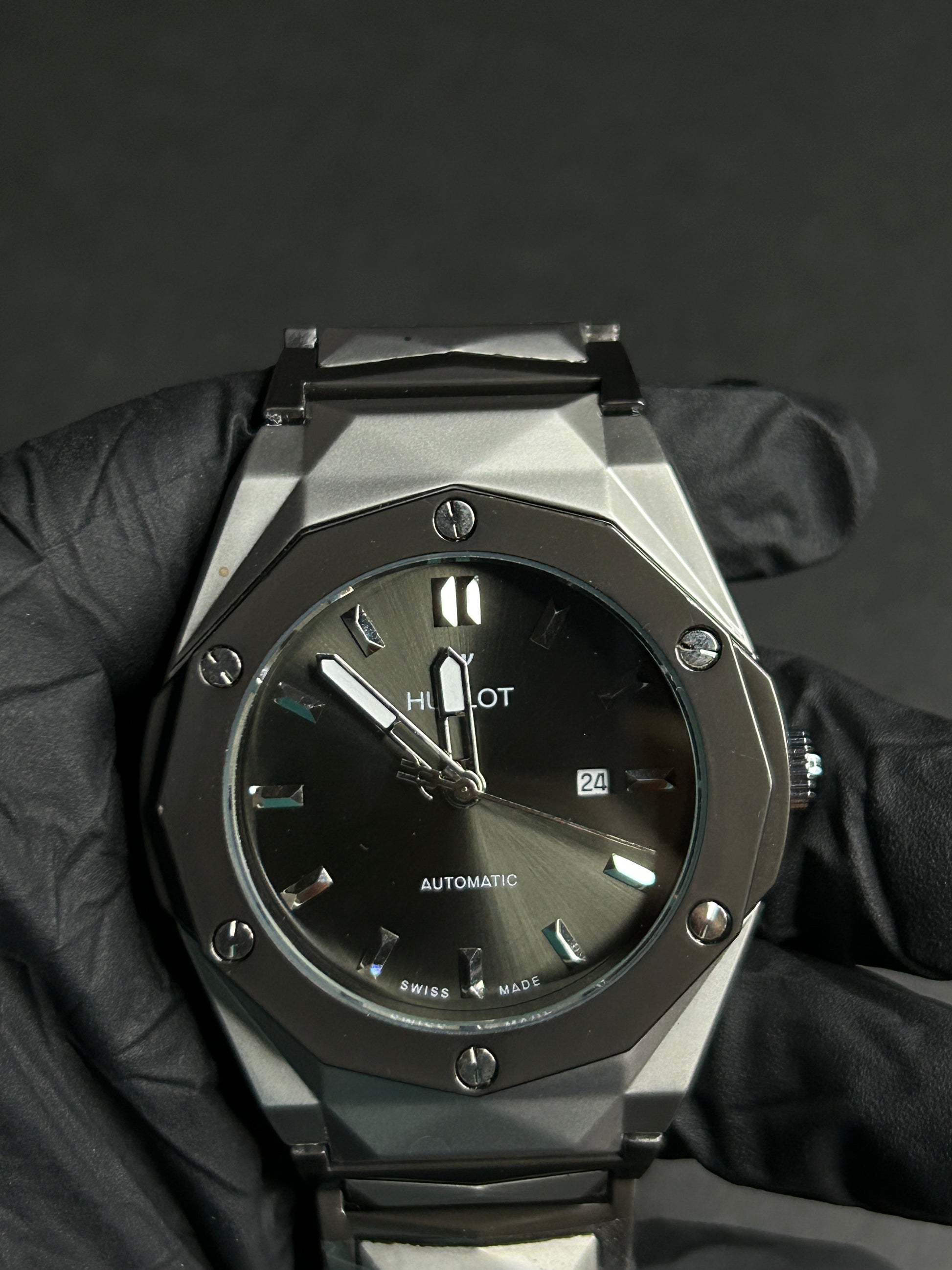 A perfect fusion of contemporary design and classic Swiss tradition, this Hublot timepiece stands out with its bold geometry and flawless finish — ideal for collectors and modern gentlemen alike.