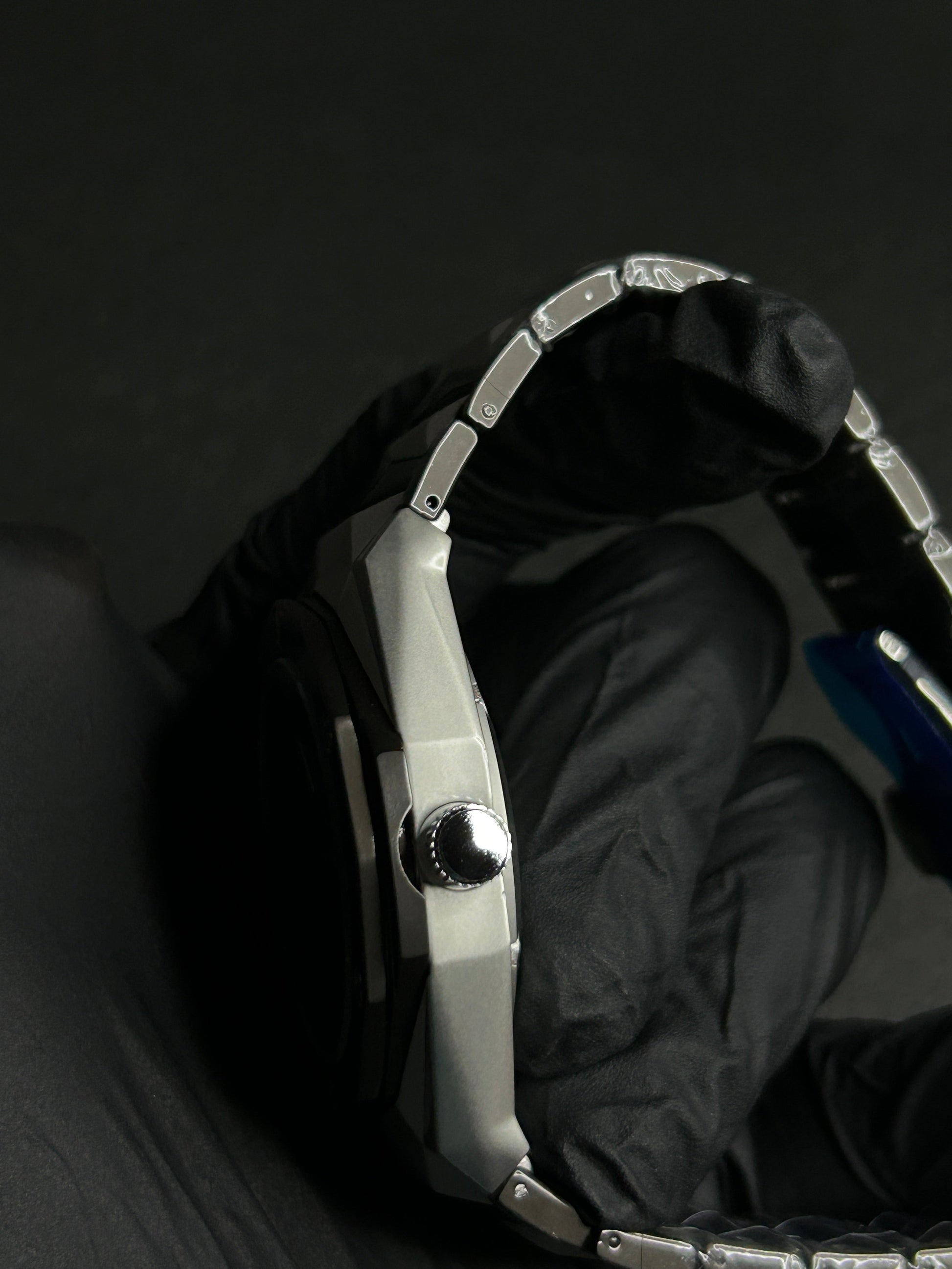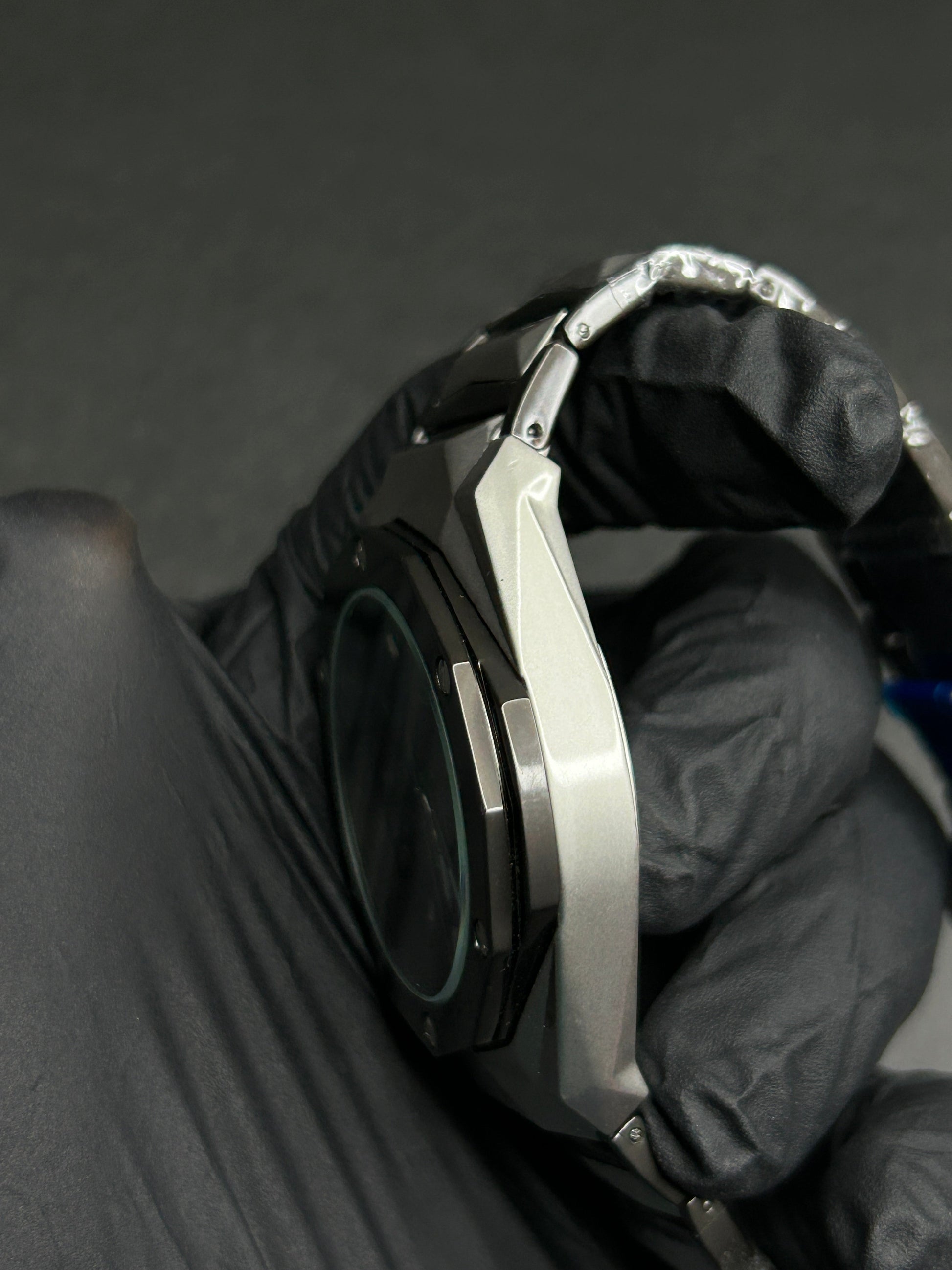 Case: Brushed angular metal with octagonal bezel