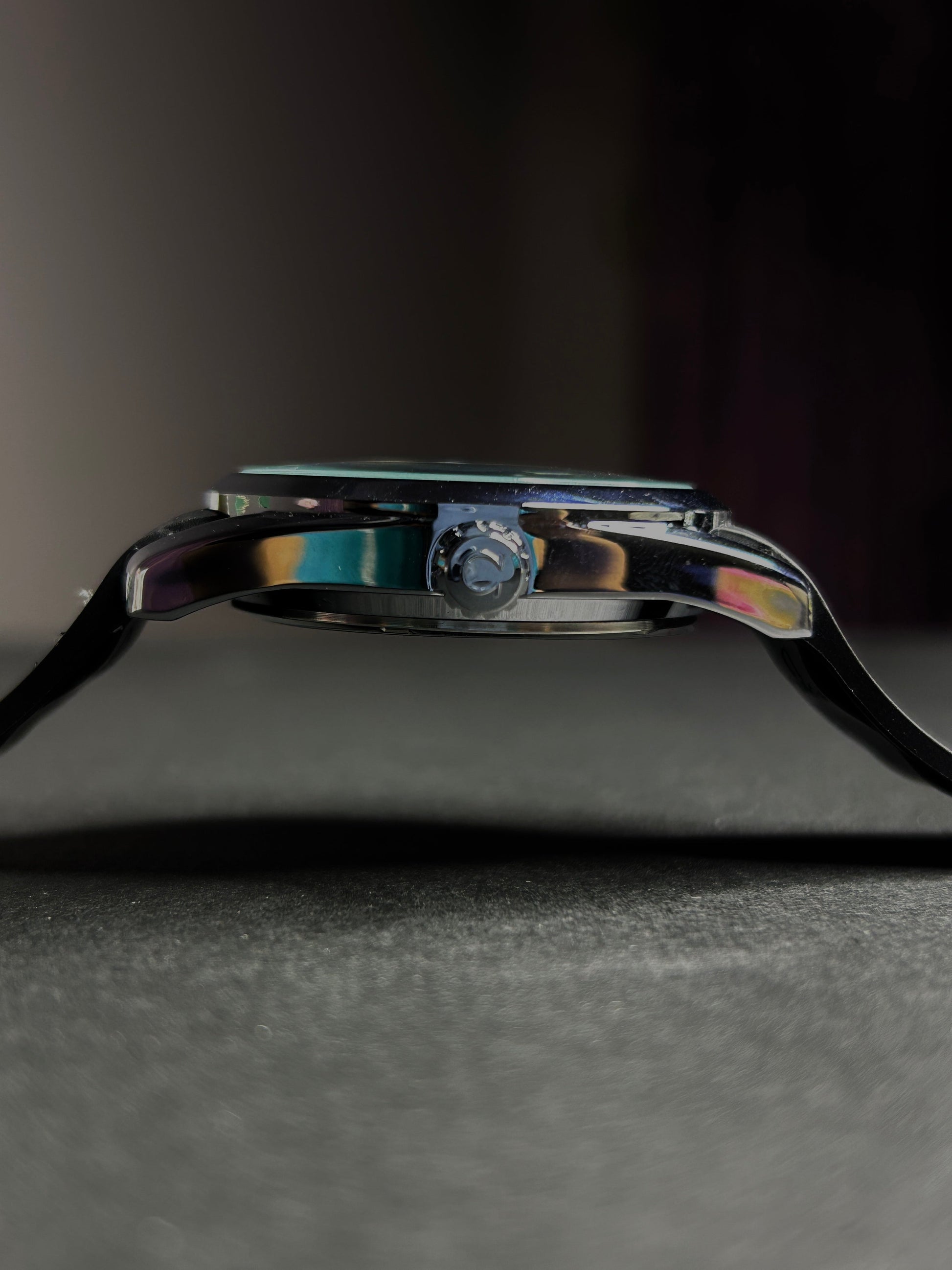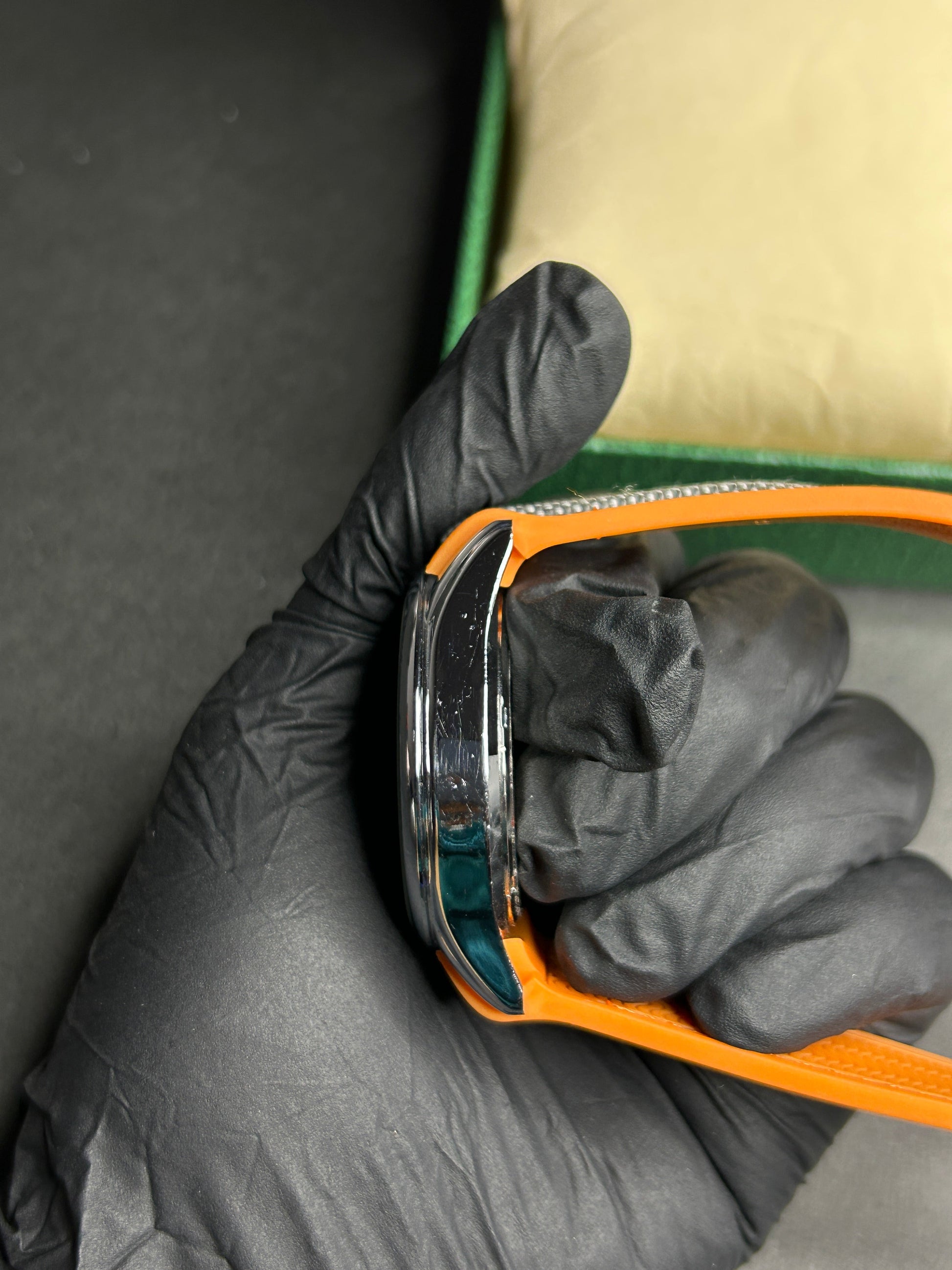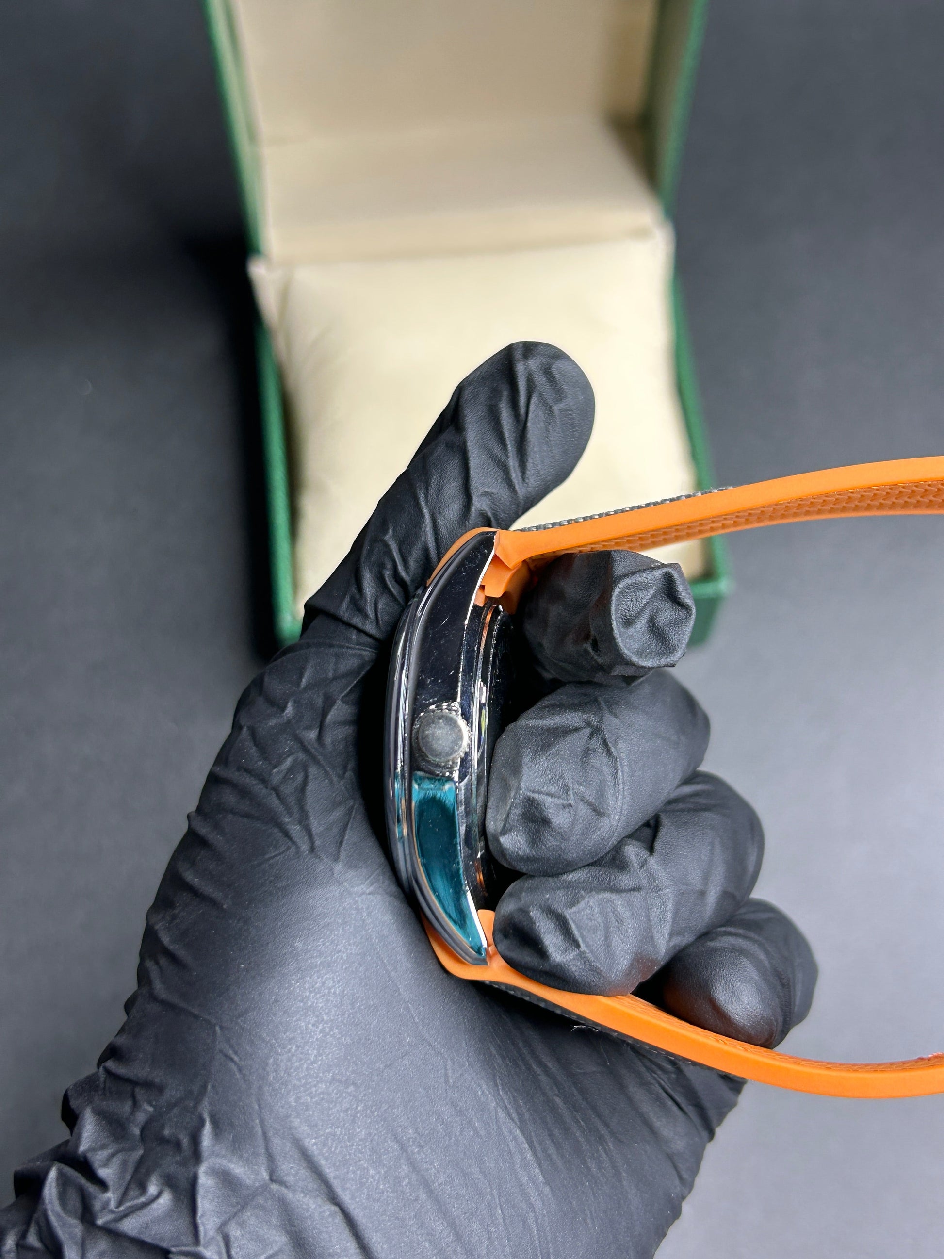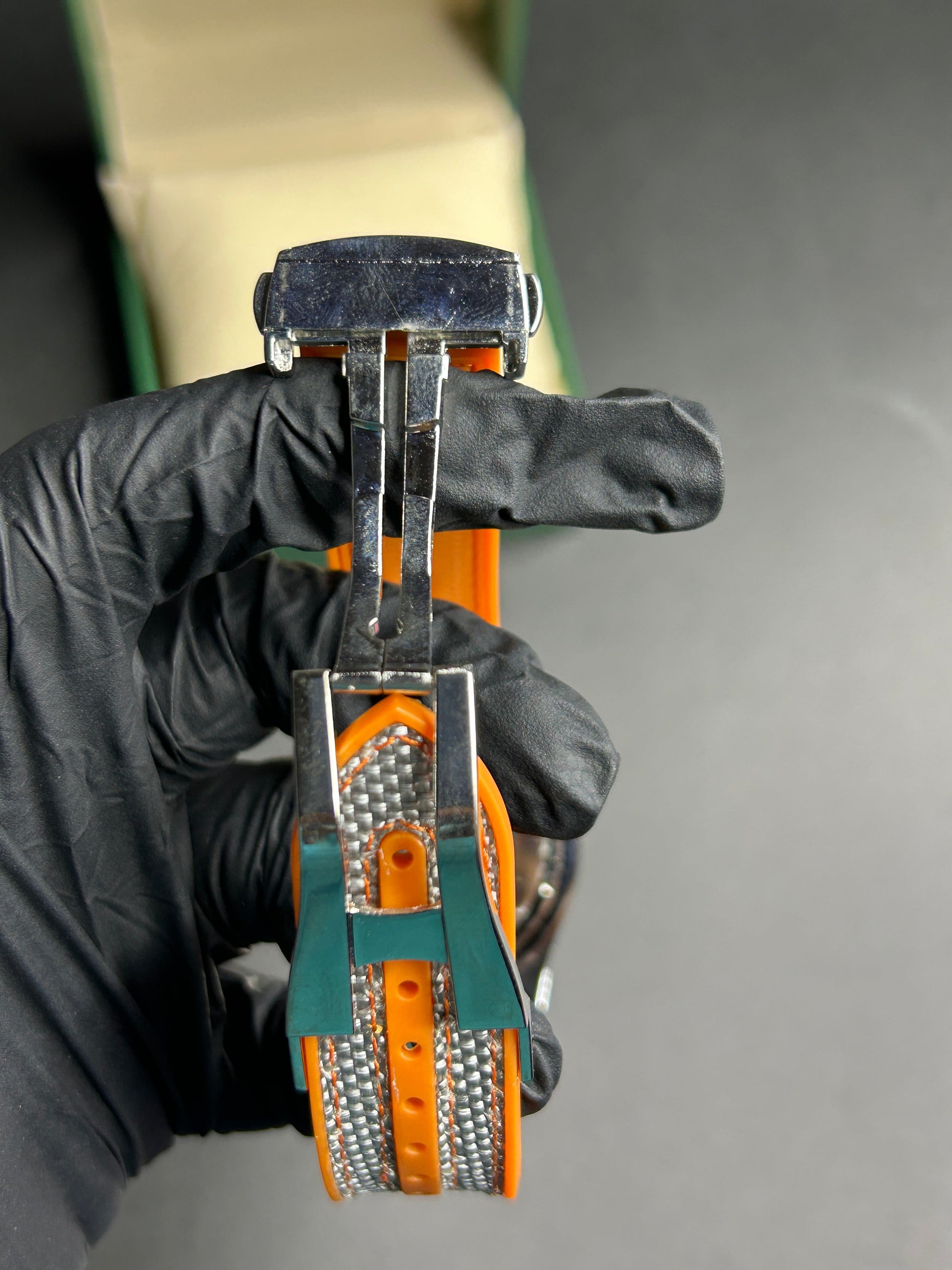 Experience the perfect blend of performance, comfort, and style with the Omega Seamaster Professional. This timepiece features a unique dual-layer strap made of durable silicone with a carbon cloth overlay, offering a bold and sporty design that stands out effortlessly.